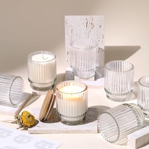 7 oz Empty Clear Ribbed Glass Candle Jars for Making Candles