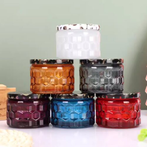 Colorful Honeycomb Embossed Empty Glass Candle Jars 4OZ 120ML