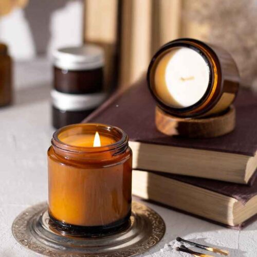 7.0 oz Glass Jar for Candle Amber Brown Glass Jar with Black Aluminum Lids