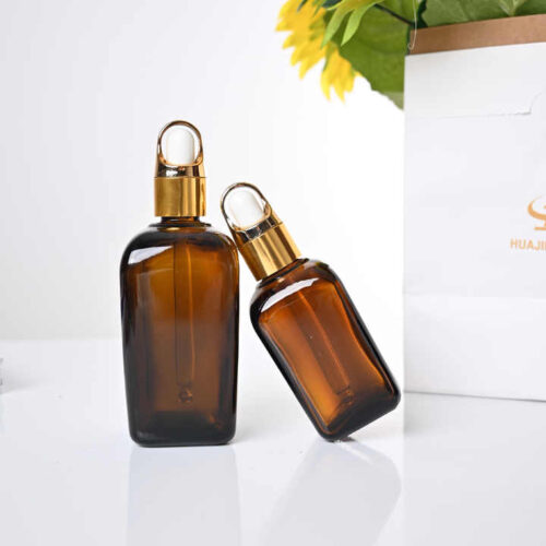 30ml 50ml Luxury Brown Amber Glass Dropper Bottles Custom Blue Gradient square Glass Dropper Bottle