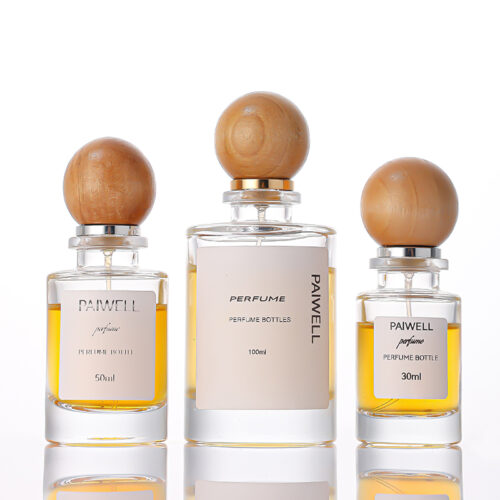 Round Glass Perfume Bottle with Wooden Brown Cap