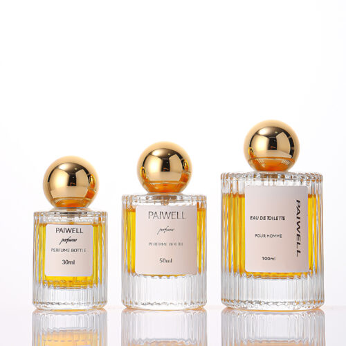 Wholesale Glass Perfume Bottle Clear Round Perfume Bottles Design With Gold Cap