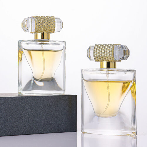 Wholesale 50ml Tall square Polygon Perfume Glass Bottle with Crown Cap