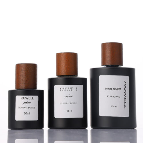 Wholesale Customized 30-50-100ml Perfume Bottle Black Frosted with Wooden Cap