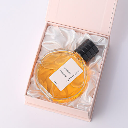 50&100ml Clear Round Shoulder Perfume Glass Bottle with Black Lid