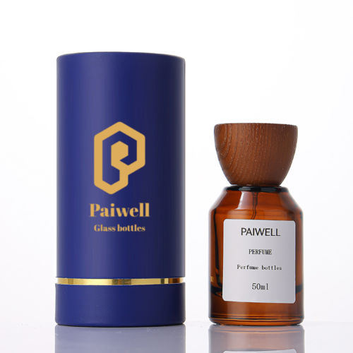 50ml Round Empty Amber Fragrance Glass Perfume Bottle With Wooden Cap