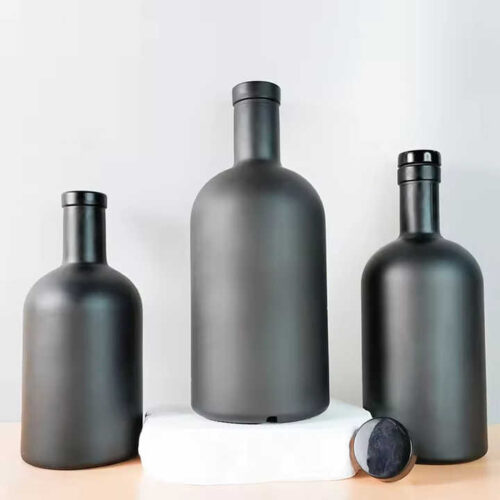 Luxury 200ml 375ml 500ml 750ml 1000ml Matte Black Amber Liquor Vodka Whiskey Wine Glass Bottle with Stopper