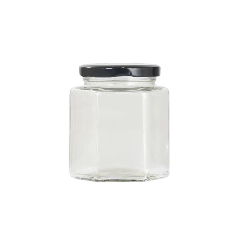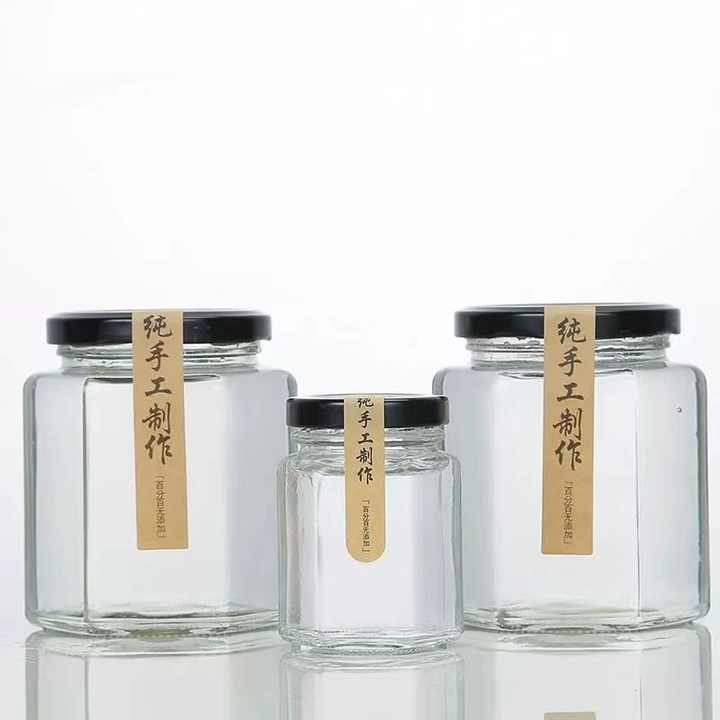 Bulk Hexagon Food Honey Jar 45ml80ml180ml280ml380ml480ml Glass Container with sealed Metal Lids Wholesale
