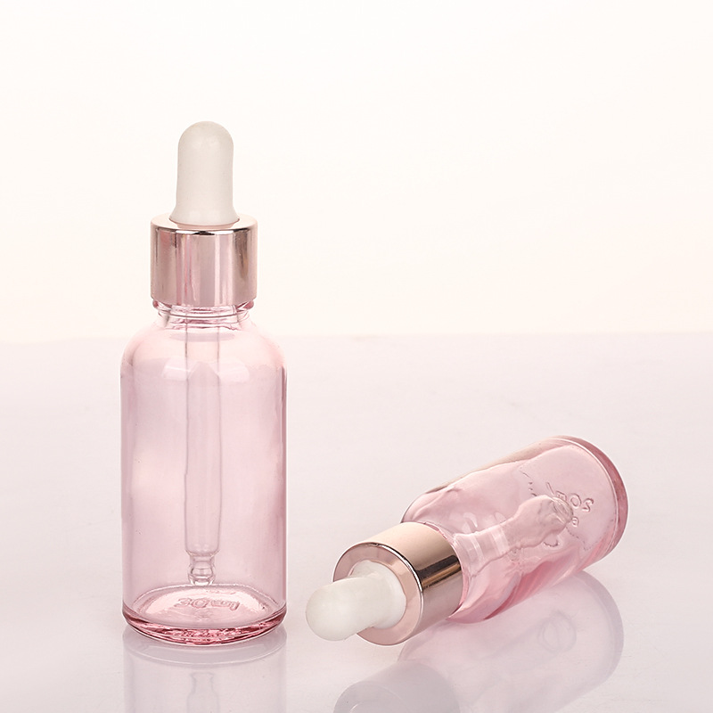 Rose Gold Cap Pink Cosmetic Essential Oil Serum 5ml 10ml 15ml 20ml 30ml 50ml 100ml Glass Dropper Bottles