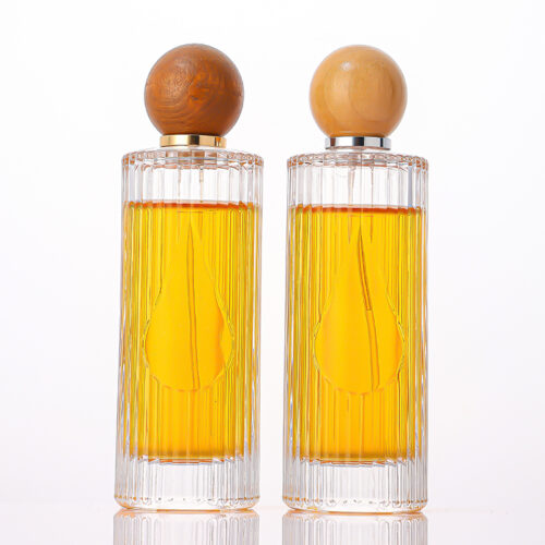 150ml High Capacity Vertical Grain Cylindrical Perfume Bottle with Wooden Cap